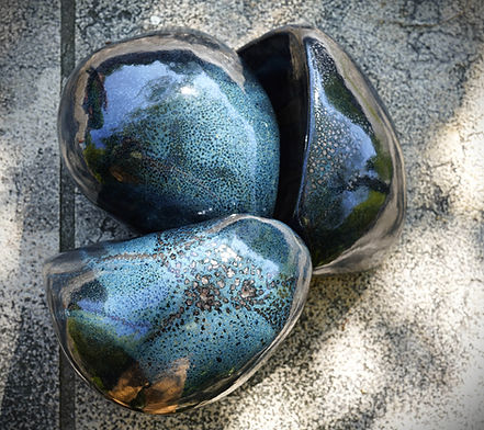 Triptyque, Grès émaillé, 18 x 32 x 30 cm, 2025